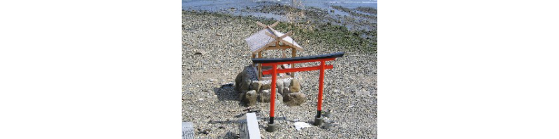 단노우라 전투에서 중상을 입은 헤이케 가문의 무장이, 간신히 해안에 도착하여 물 구덩이를 발견. 목을 축이려고 마셨을때 맛있는 물이었지만 한입 더 마시니 소금물로 바뀌었다는 전설이 남아있습니다. 현재는 [헤이케의 일배수]라고 불리우며, 인글의 물결에서 우러나오는 청수에는 사당이 세워져 있습니다. 그 물은 설날 아침에 처음 길은 물 [정화수]로서, 단노우라 전투에서 입수한 안토쿠 천황을 모시는 아카마신궁의 신전에 올려지고 있습니다.